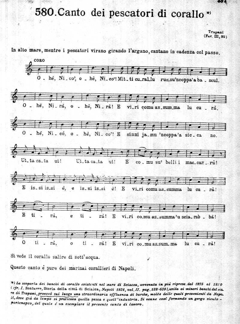 "In alto mare, mentre i pescatori virano girando l’argano,cantano in cadenza col passo.