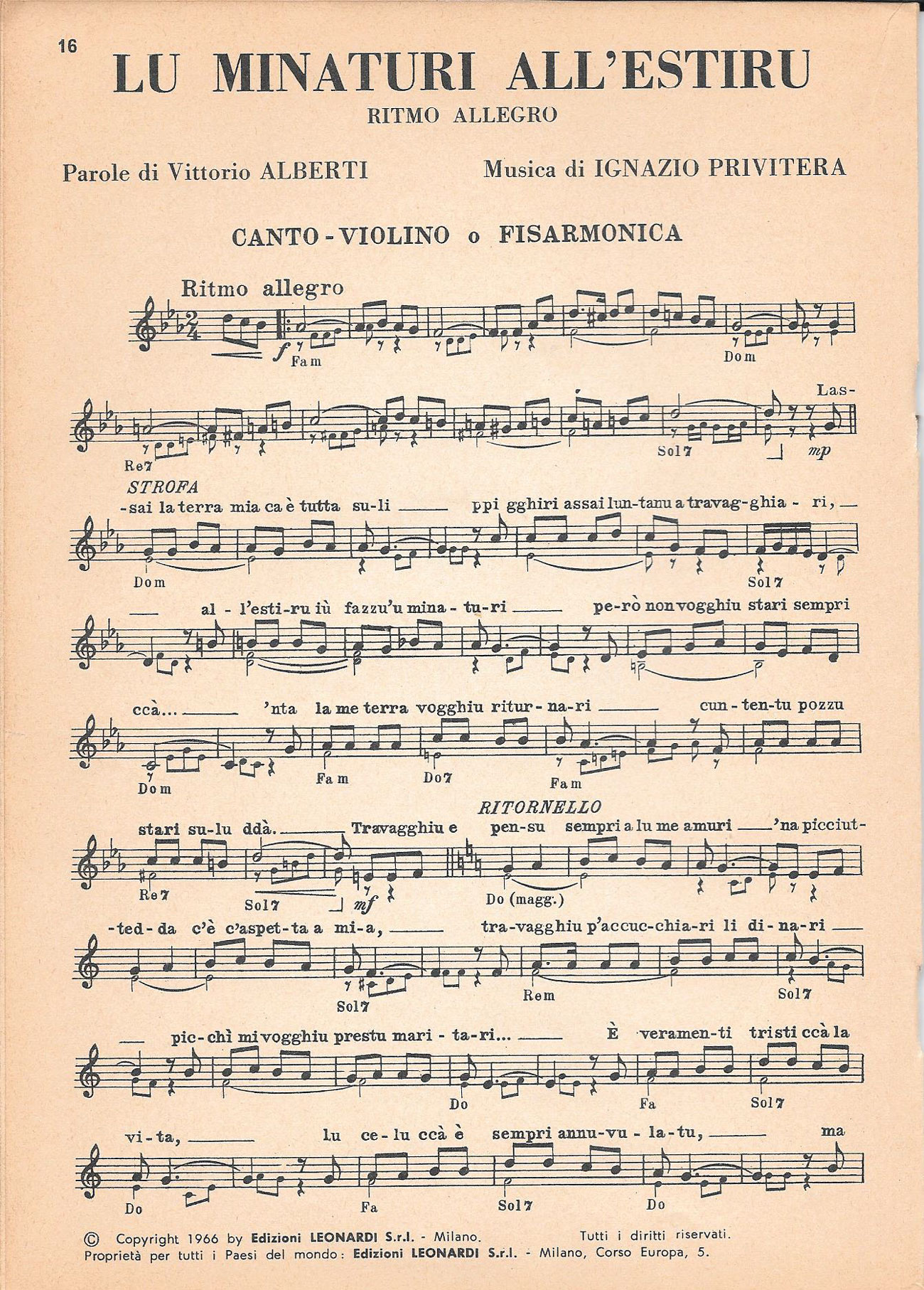 Lasciai la terra mia che è tutta sole