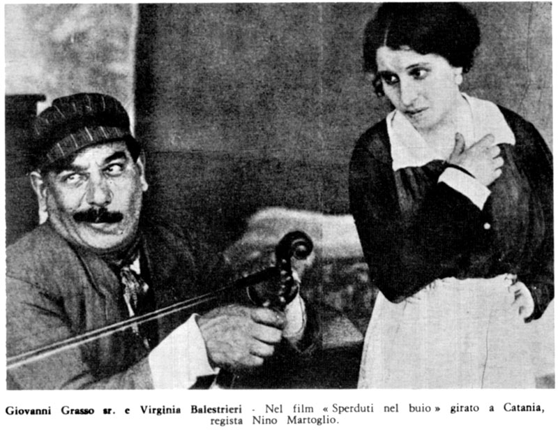 Tentò il cinema (a quei tempi c’era soltanto il muto), nel 1912 in Zolfara, nel 1914 in alcuni altri, fra cui Capitan Blanco con regia di Martoglio e Sperduti nel buio, il piu convincente e sofferto; ma, nel complesso, senza grandi meriti, sicchè nessuno se ne rammenta più.