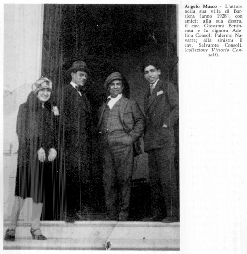 Dal loggione gli gridavano: «Angilu, ‘a musca! »; era una canzoncina intitolata per 1’appunto ‘A musca, quasi il suo cognome, ed egli la eseguiva più con le smorfie e le gambe che con la voce. A poco a poco, ma non intaccandosi i rapporti di colleganza, fra i due attori nacque una vivace rivalità professionale; e così il comico (« il   mimo »,  come lo chiamarono per la mobilità del suo volto e dell’intera persona) si staccò dal compagno.
