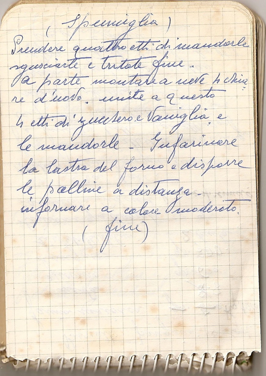 Montare i bianchi d’uovo e man mano aggiungere lo zucchero, la vaniglia e le mandorle. fate delle palline e inseritele, distanti fra loro, nel forno a temperatura moderata.