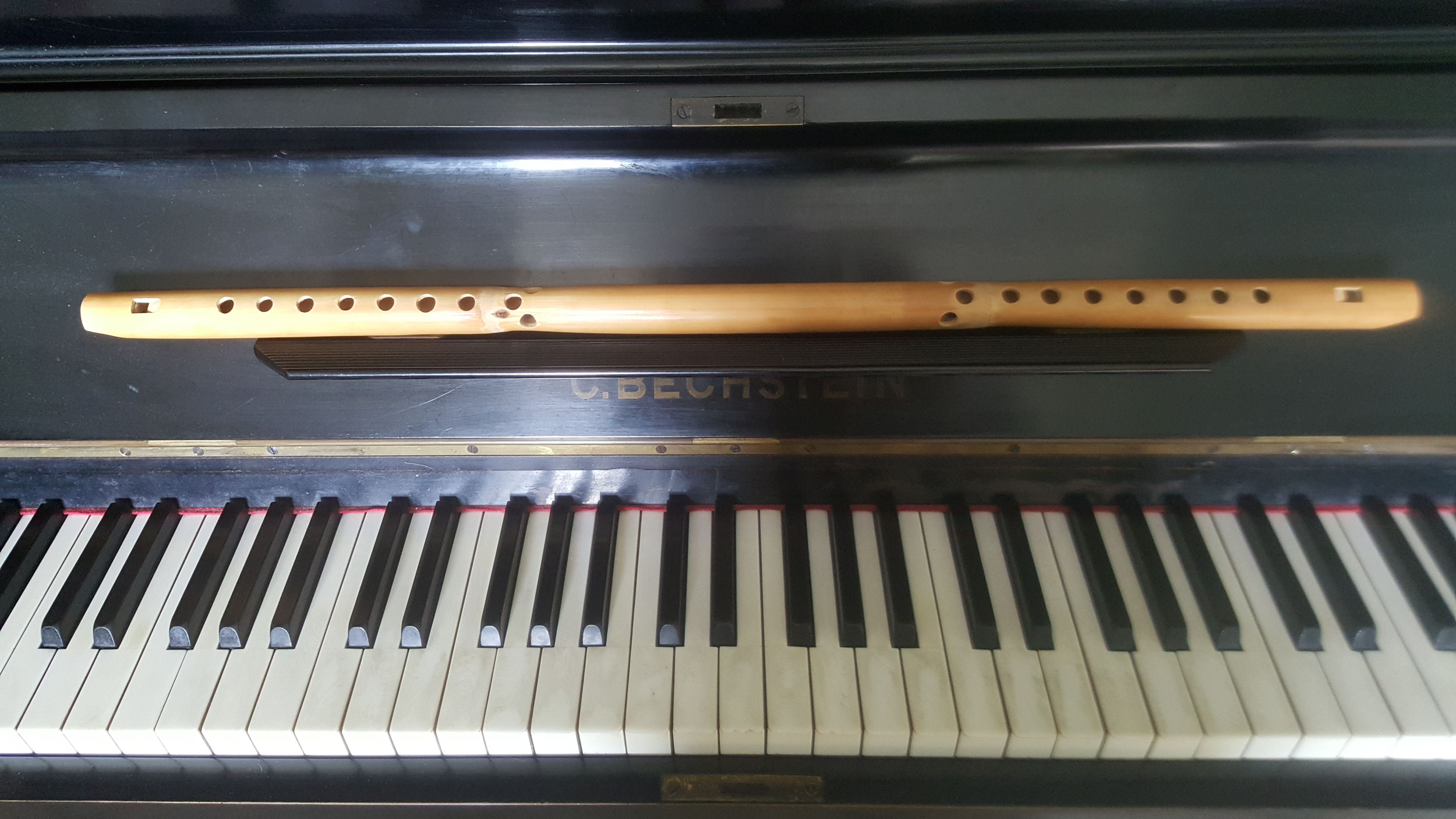 un cilindro cavo di canna recante in tutto 9 fori